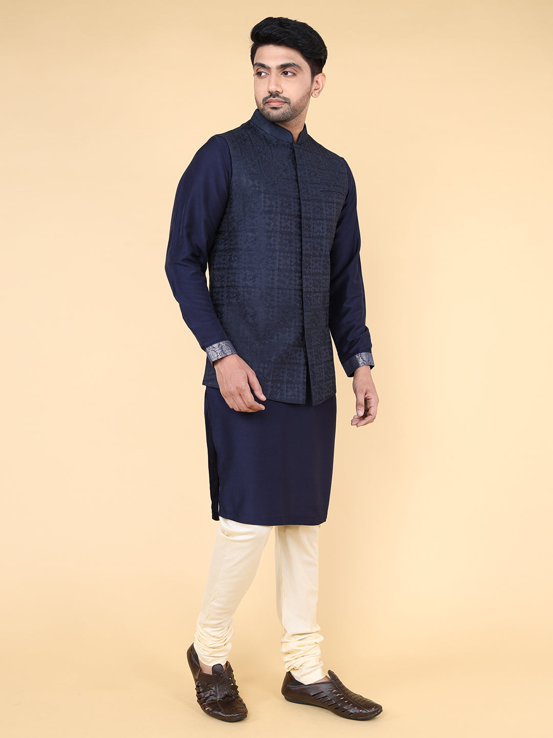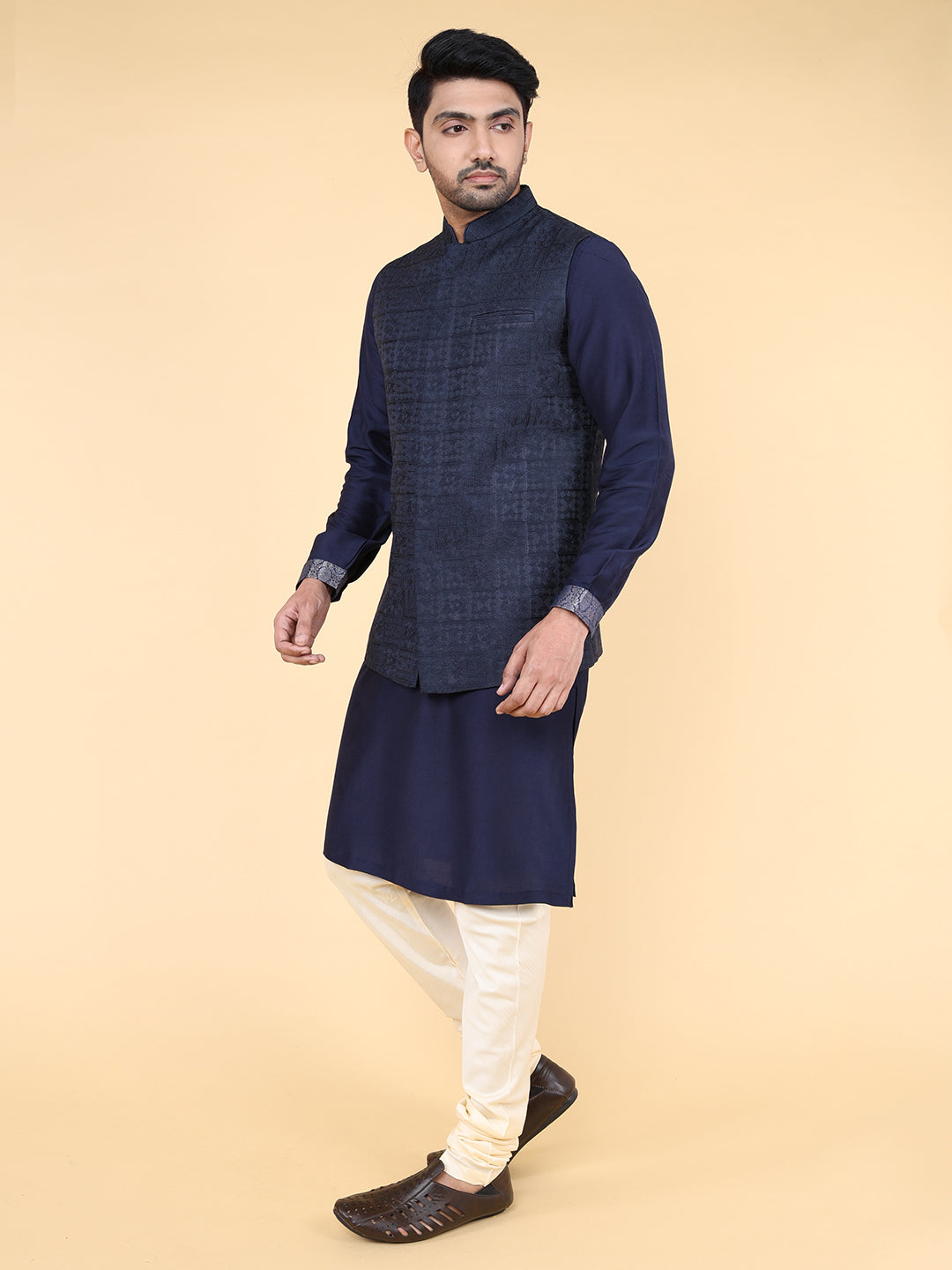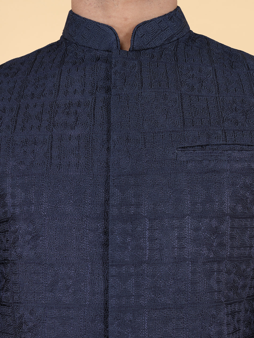 Introducing the ZOIS Jacket, adorned with intricate all-over geometric embroidery. This stylish Navy blue blends traditional craftsmanship with a modern touch, offering a perfect balance of elegance and contemporary flair. The delicate embroidery on the soft fabric adds a refined yet bold statement, making this jacket a versatile addition to your wardrobe. Elevate your fashion game with ZOIS's commitment to high-quality, standout designs.