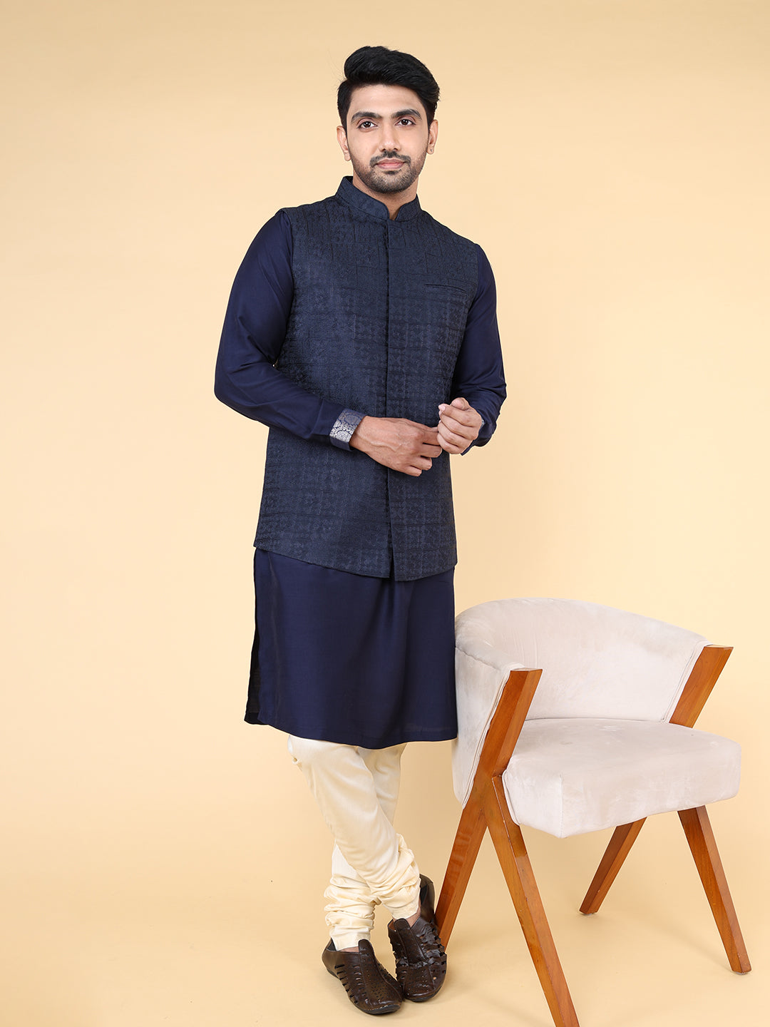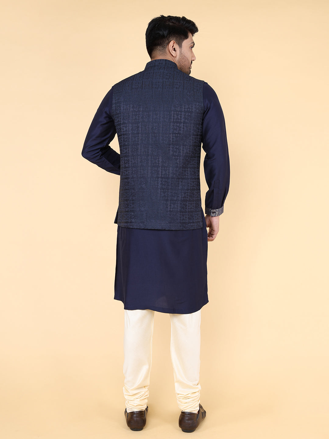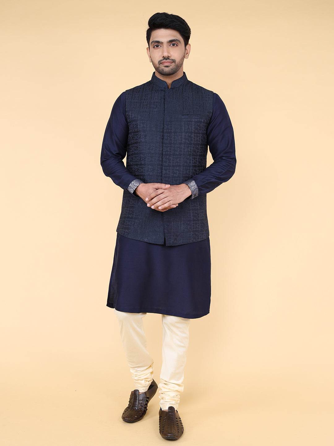Introducing the ZOIS Jacket, adorned with intricate all-over geometric embroidery. This stylish Navy blue blends traditional craftsmanship with a modern touch, offering a perfect balance of elegance and contemporary flair. The delicate embroidery on the soft fabric adds a refined yet bold statement, making this jacket a versatile addition to your wardrobe. Elevate your fashion game with ZOIS's commitment to high-quality, standout designs.