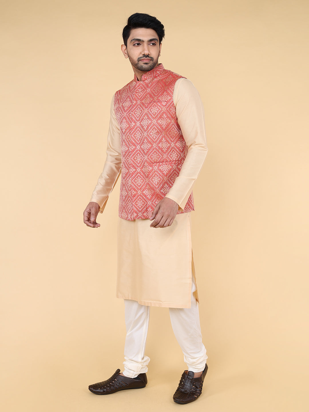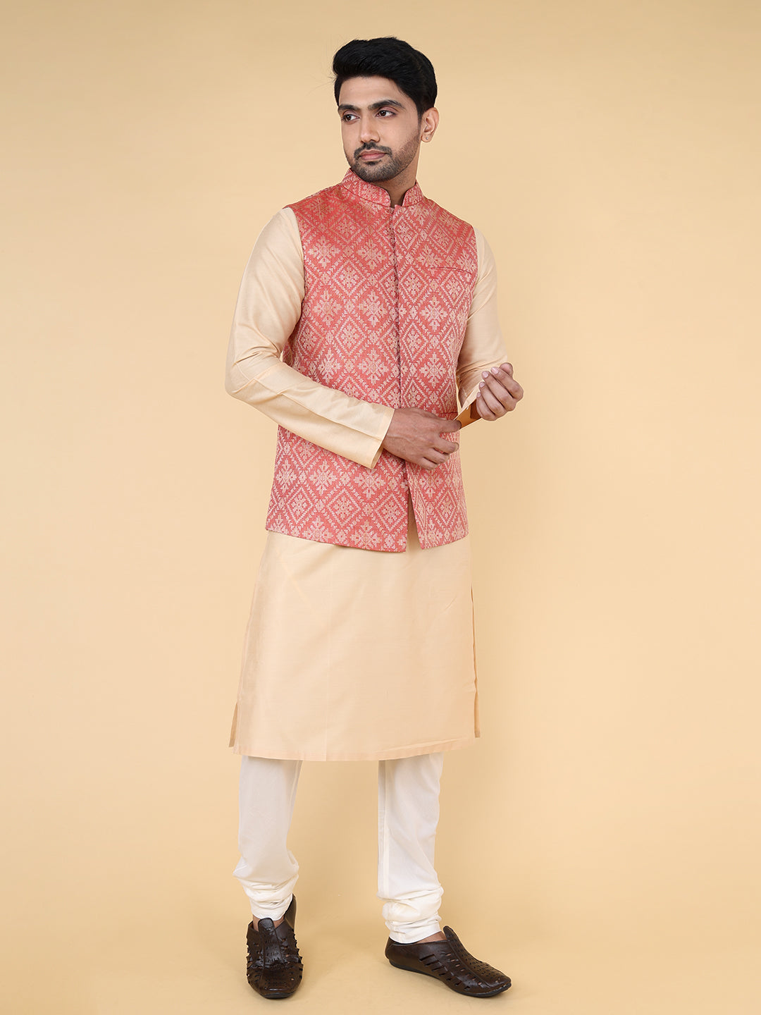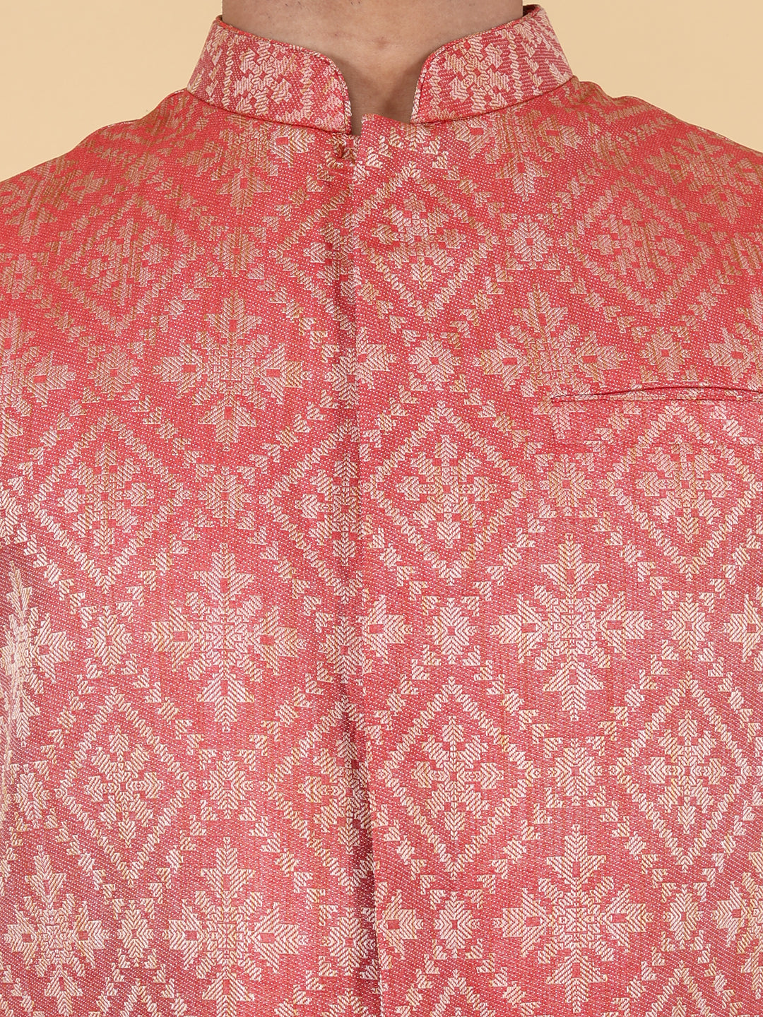 Introducing the ZOIS Light Pink Jacket, adorned with intricate all-over geometric embroidery. This stylish red and beige blends traditional craftsmanship with a modern touch, offering a perfect balance of elegance and contemporary flair. The delicate embroidery on the soft fabric adds a refined yet bold statement, making this jacket a versatile addition to your wardrobe. Elevate your fashion game with ZOIS's commitment to high-quality, standout designs.