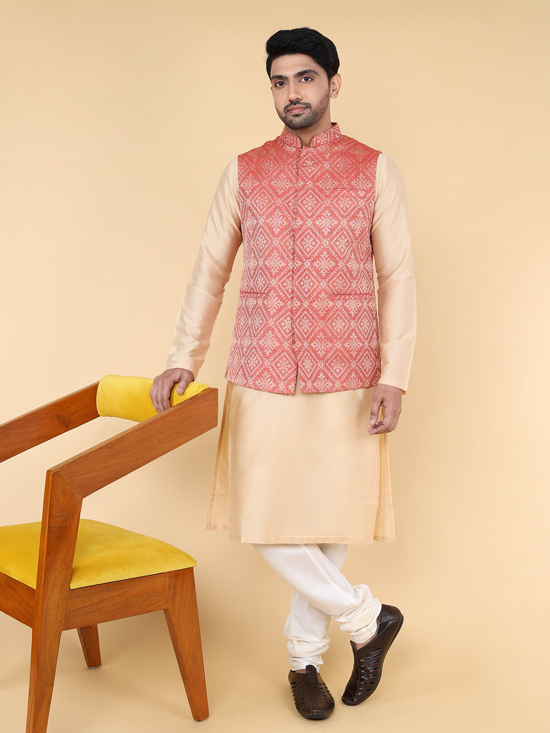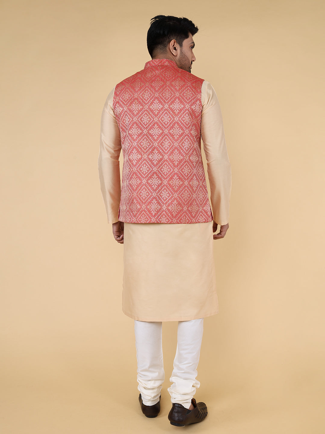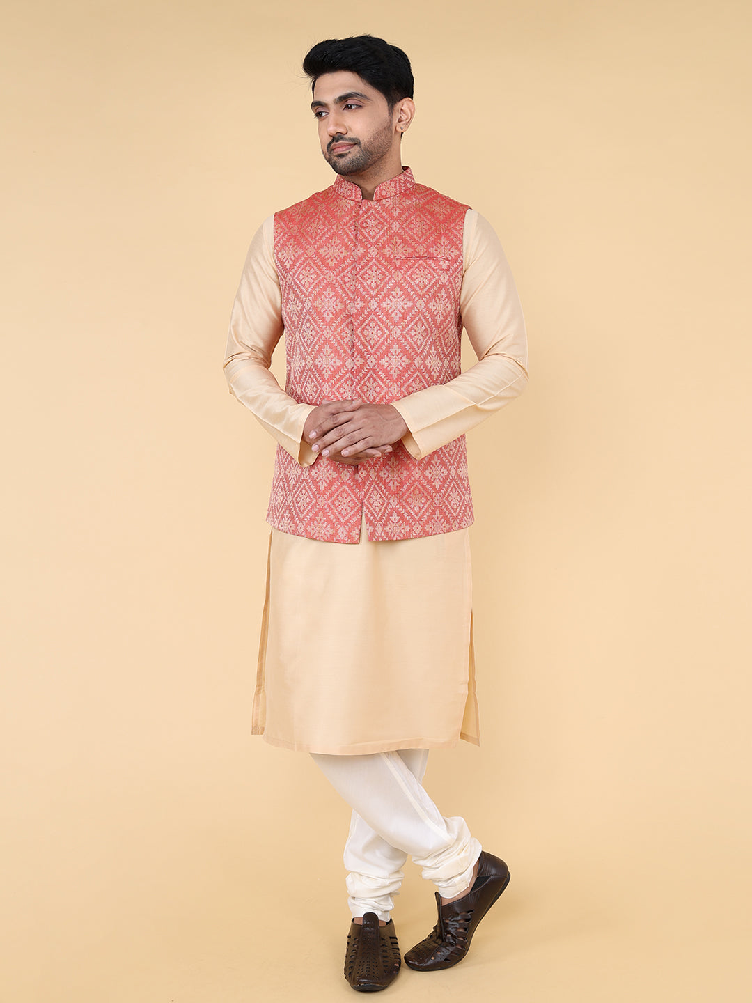 Introducing the ZOIS Light Pink Jacket, adorned with intricate all-over geometric embroidery. This stylish red and beige blends traditional craftsmanship with a modern touch, offering a perfect balance of elegance and contemporary flair. The delicate embroidery on the soft fabric adds a refined yet bold statement, making this jacket a versatile addition to your wardrobe. Elevate your fashion game with ZOIS's commitment to high-quality, standout designs.